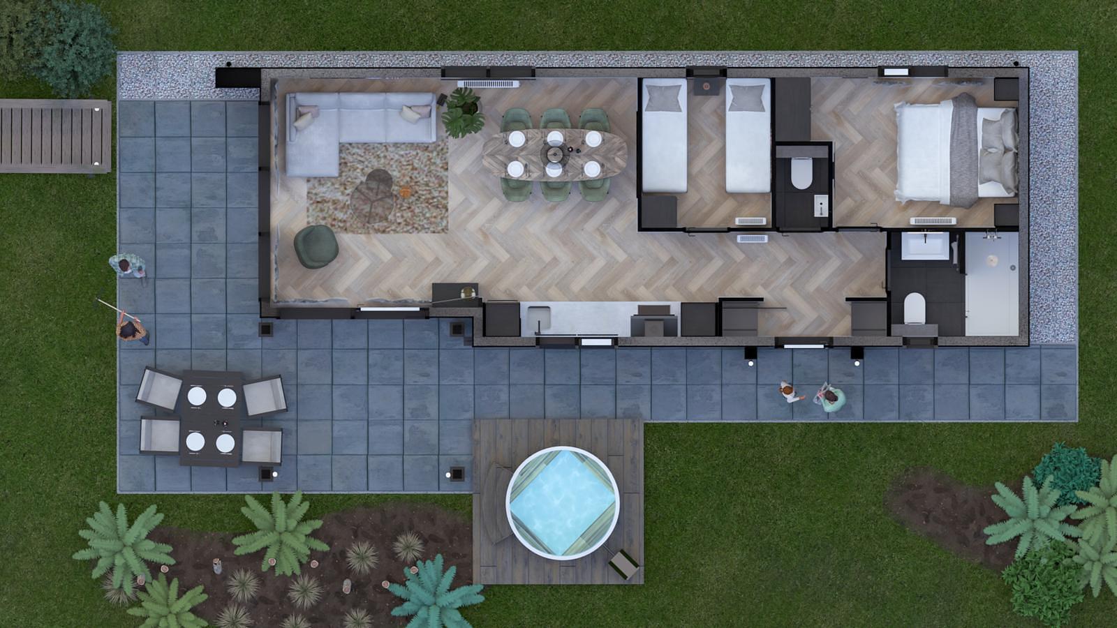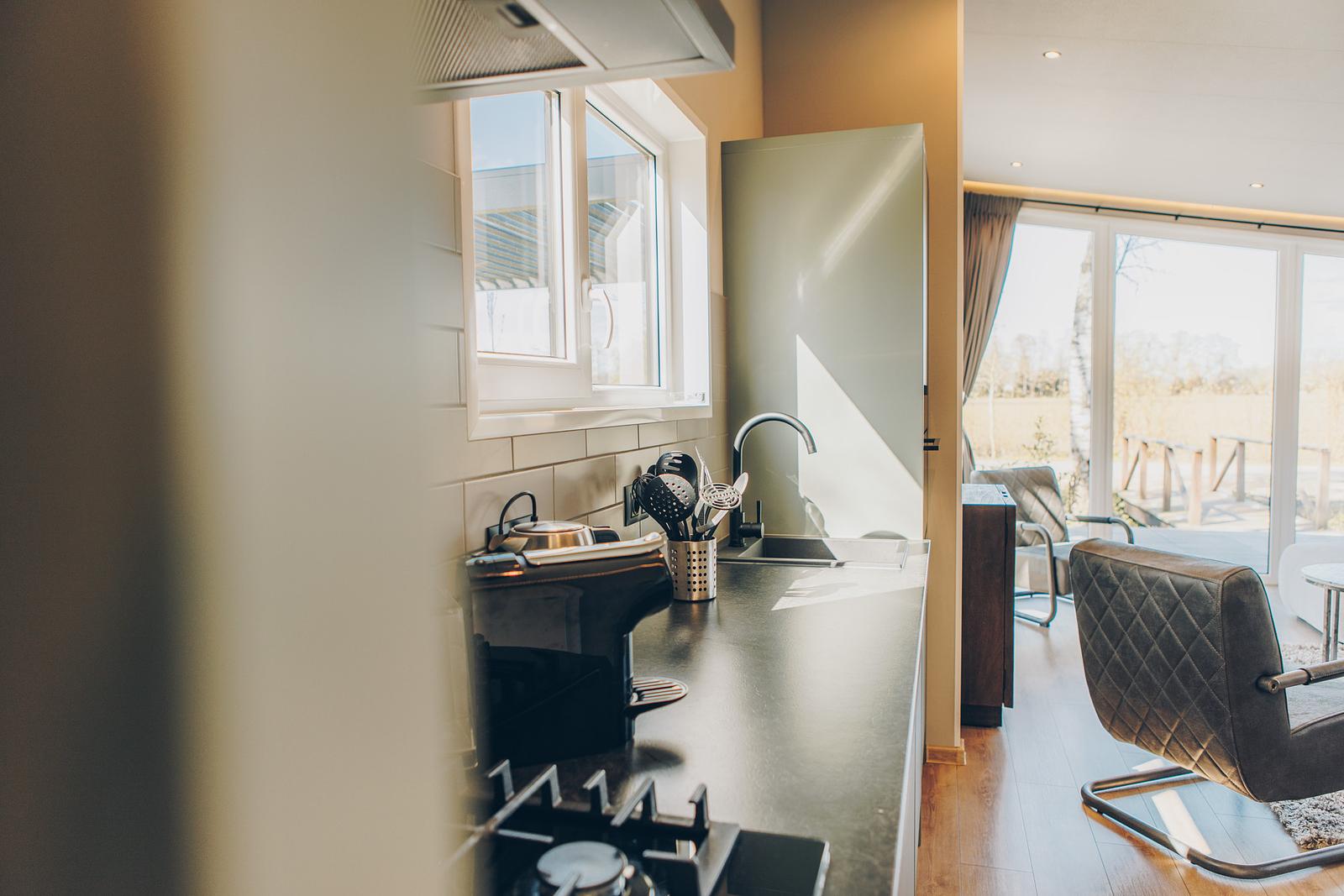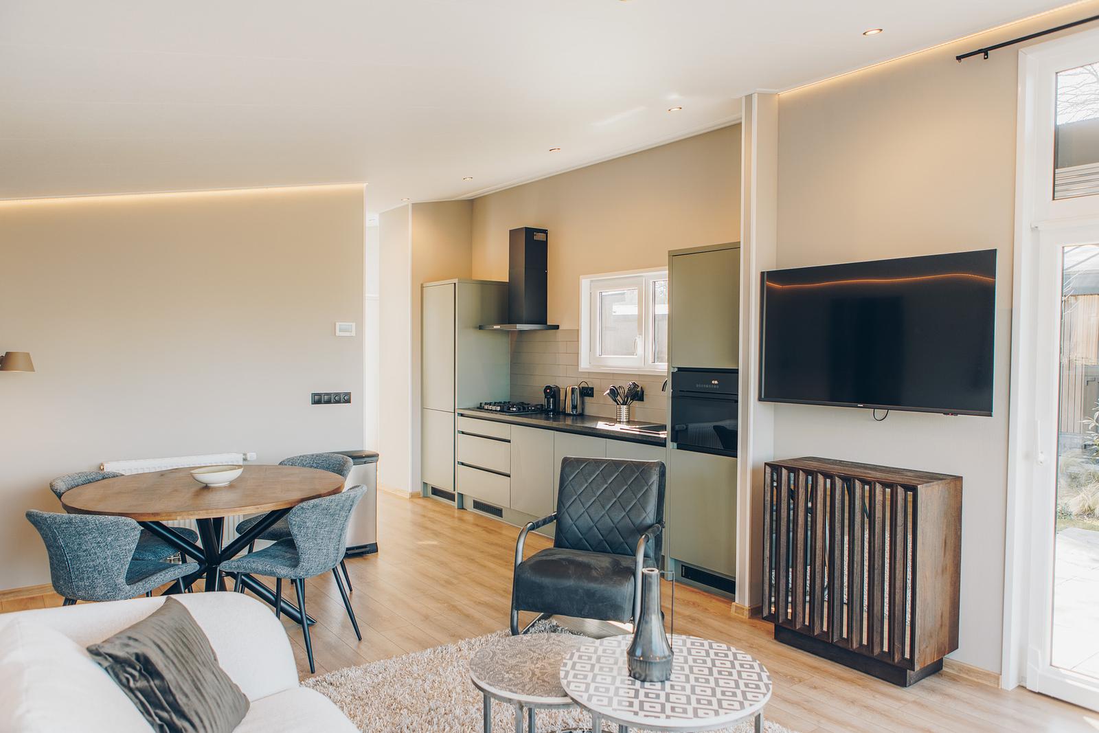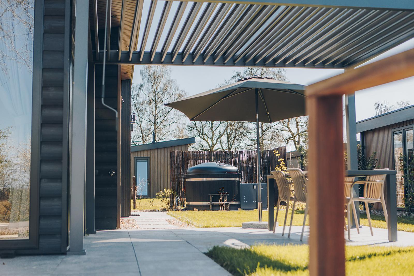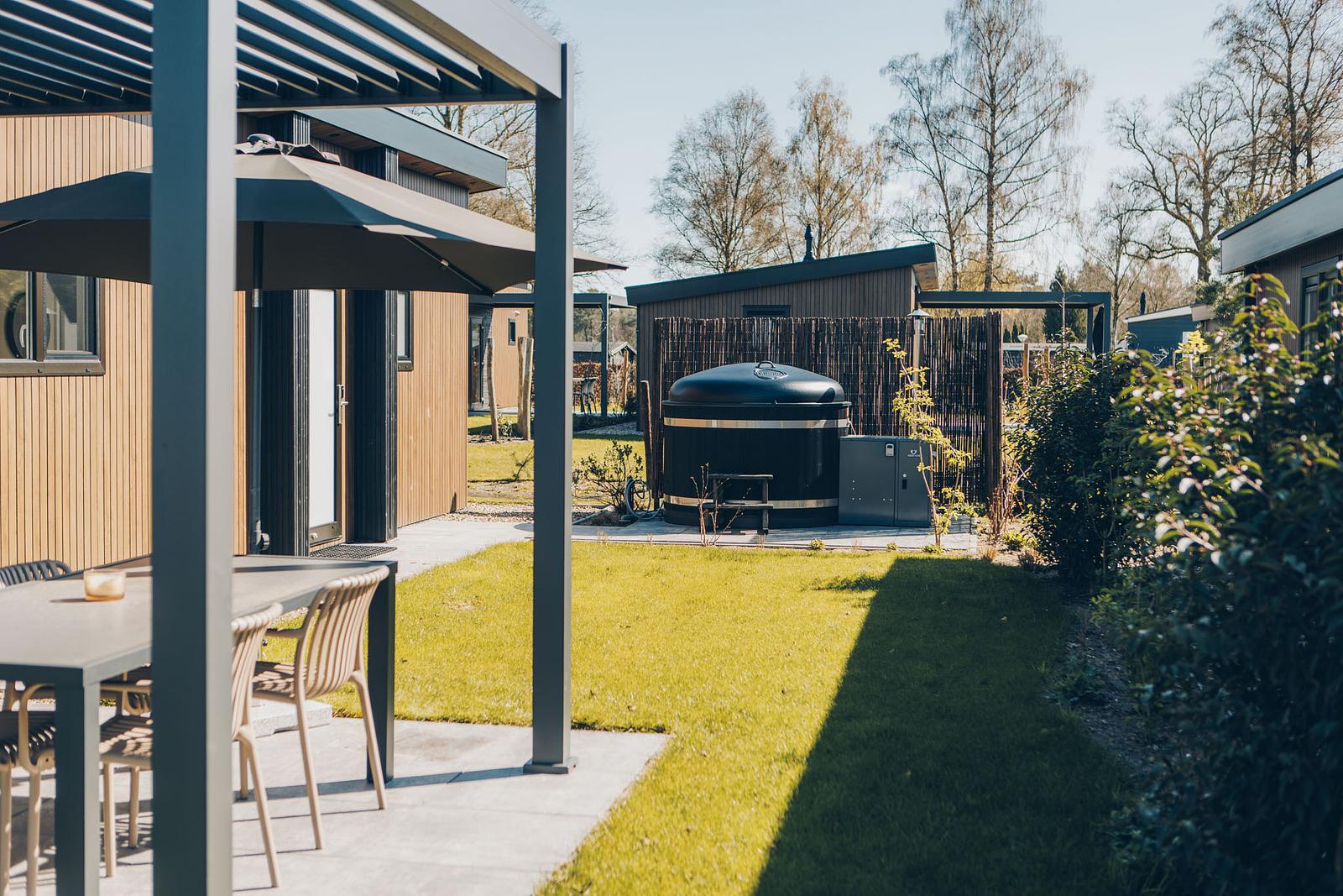 Buiten wacht de hottub, die van het terras een heerlijke plek maakt om de dag rustig af te sluiten. Juist die combinatie van comfort binnen en ontspanning buiten geeft deze woning een extra luxe vakantiegevoel.